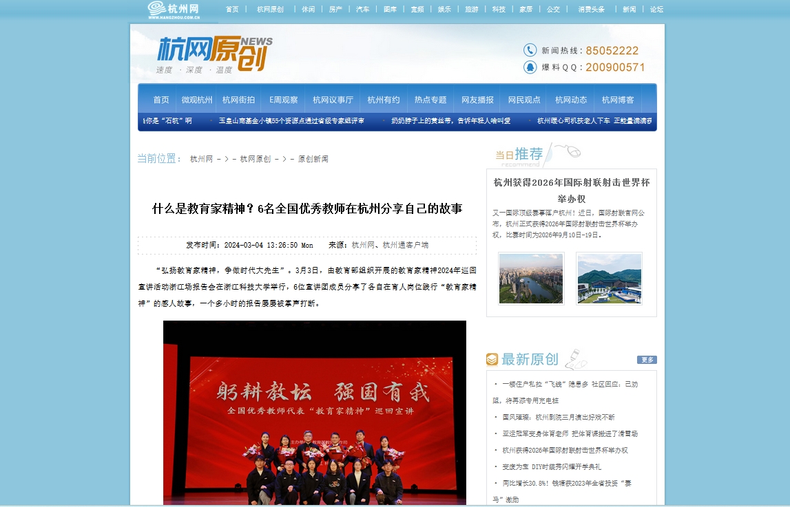 杭州网:什么是教育家精神?6名全国优秀教师在杭州分享自己的故事