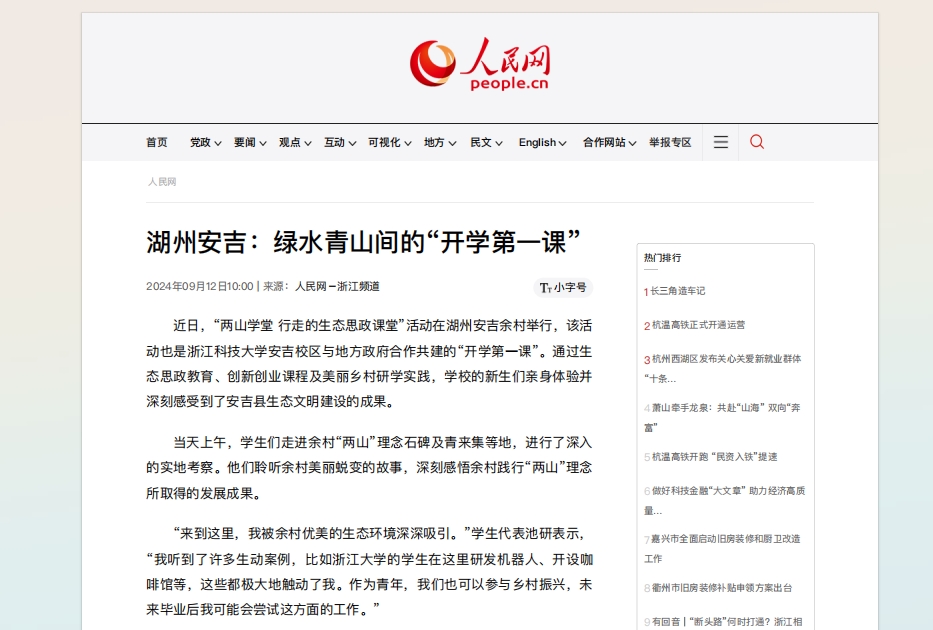 人民网浙江频道:湖州安吉:绿水青山间的“开学第一课”