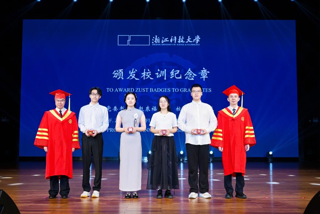 校党委书记赵东福、校长陈建孟共同为省级、校级优秀毕业生代表颁发荣誉证书,为毕业生代表颁发校训纪念章,为获得2025年卓越学子奖学金获奖学生颁奖。校党政班子成员为毕业生代表颁发学术诚信荣誉证书,为校友联络员代表颁发聘书。