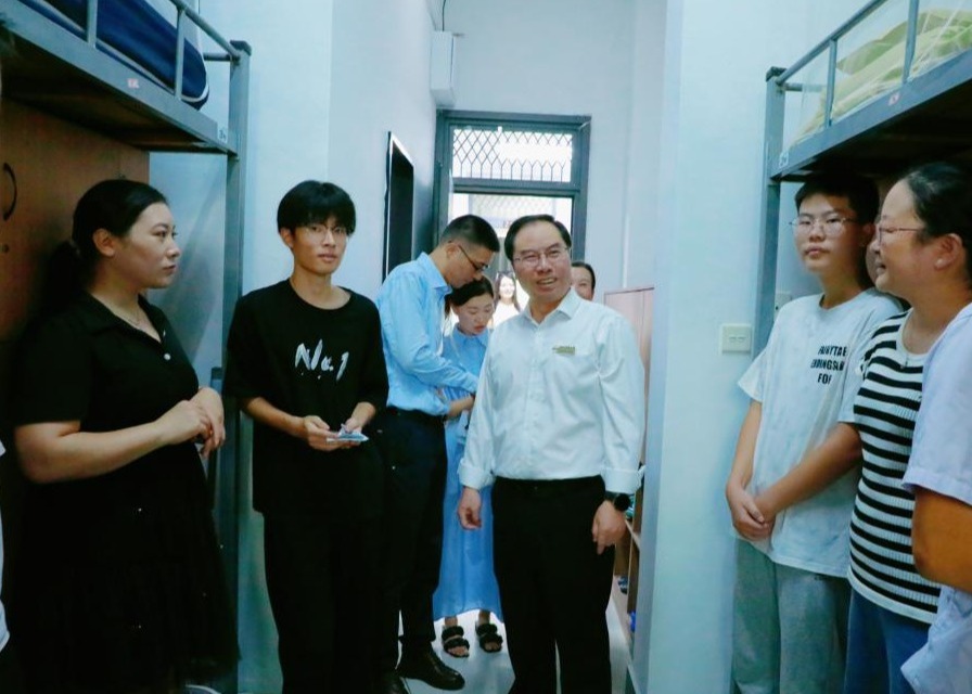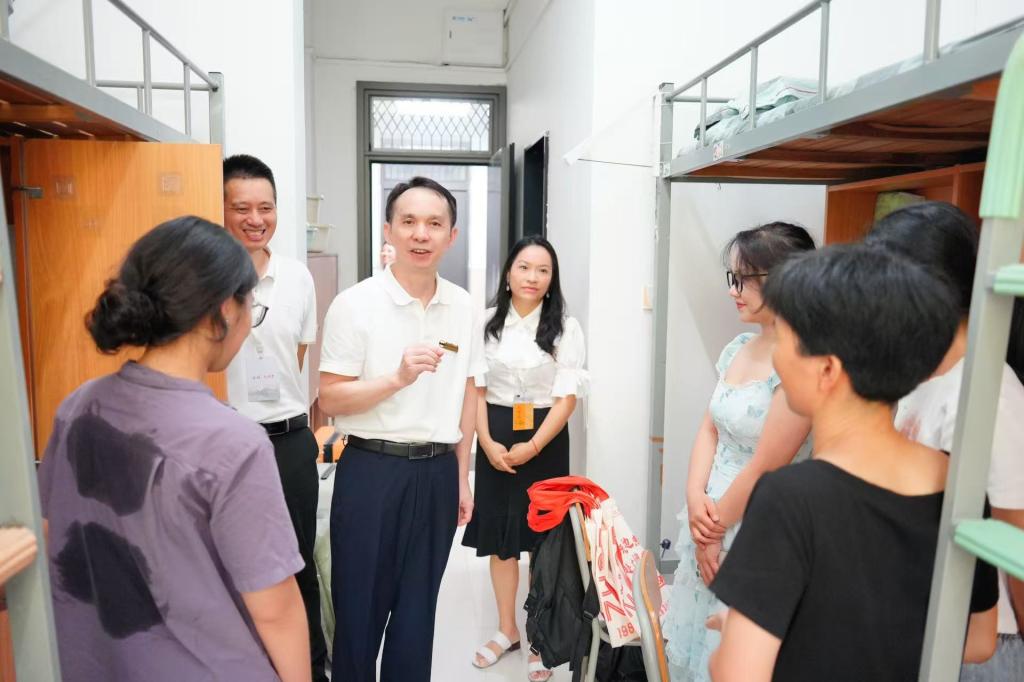 新生报到期间,校党委书记赵东福,校长陈建孟等校党政领导班子成员分别在两校区走访迎新现场和新生寝室,指导各项迎新工作。校领导详细询问新生和家长报到流程是否顺畅,认真倾听他们初入校园的感受,鼓励新同学尽快适应大学生活节奏,以饱满的热情和昂扬的斗志迎接未来学习生活中的各种挑战,书写属于自己的精彩篇章。校领导看望慰问志愿者与工作人员,向他们为迎新工作付出的努力表示感谢,并叮嘱大家要以热情、细致的态度做好每一项服务工作,让每一位踏入校园的新生都能真切感受到浙科大家庭的温暖与关怀。